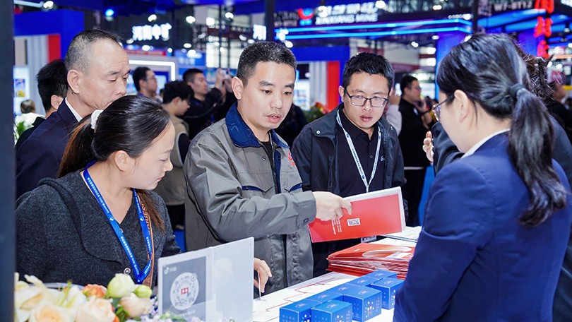 河南bwin必赢总裁冯军(左一)为参展嘉宾介绍bwin必赢概况