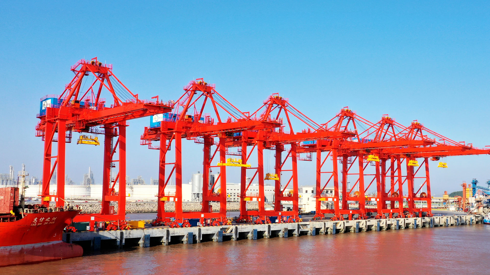 岸边集装箱起重机(简称岸桥)是集装箱码头前沿装卸集装箱船舶的专用起重设备,其功能是将集装箱从船上直接卸到码头上或集卡上,或从码头或集卡上装到船上。